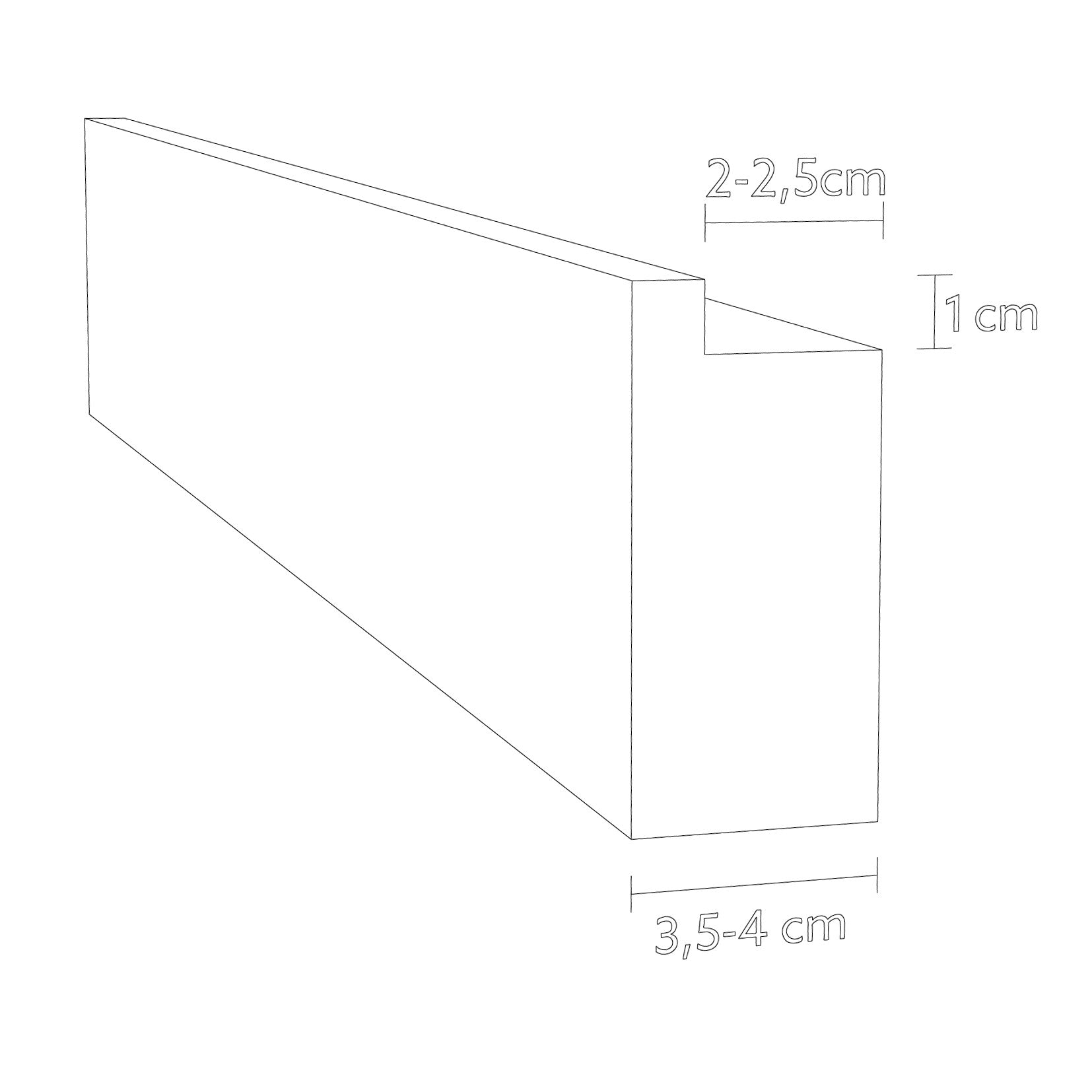 | Maße | S: 50 x 4 x 7 cm M: 100 x 4 x 7 cm L: 150 x 4 x 7 cm Gesamttiefe: 3,5 bis 4,0 cm | Tiefe der Stellfläche: 2,0 bis 2,5 cm |