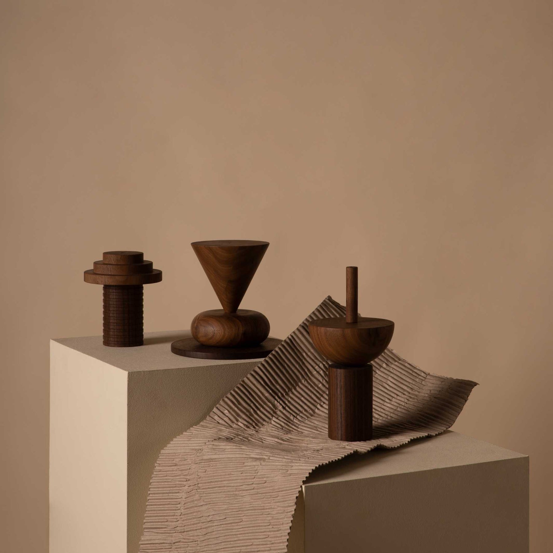 Die unverwechselbare JUNIT STANZA Deckenlampe des deutschen Designlabels Schneid Studio ist von der Bauhaus Bewegung inspiriert. Normalerweise für ihre Farbvielfalt bekannt, erhält die Deckenleuchte nun die Chance, ihre abstrakten Formen mit voller Eleganz durch die Wärme und Natürlichkeit des Walnussholzes auszudrücken. Als Hommage an das triadische Ballett können die drei Kompositionen als abstrakte Tanzfiguren gelesen werden und spiegeln die Idee der Interaktion von Körper und Raum wider.