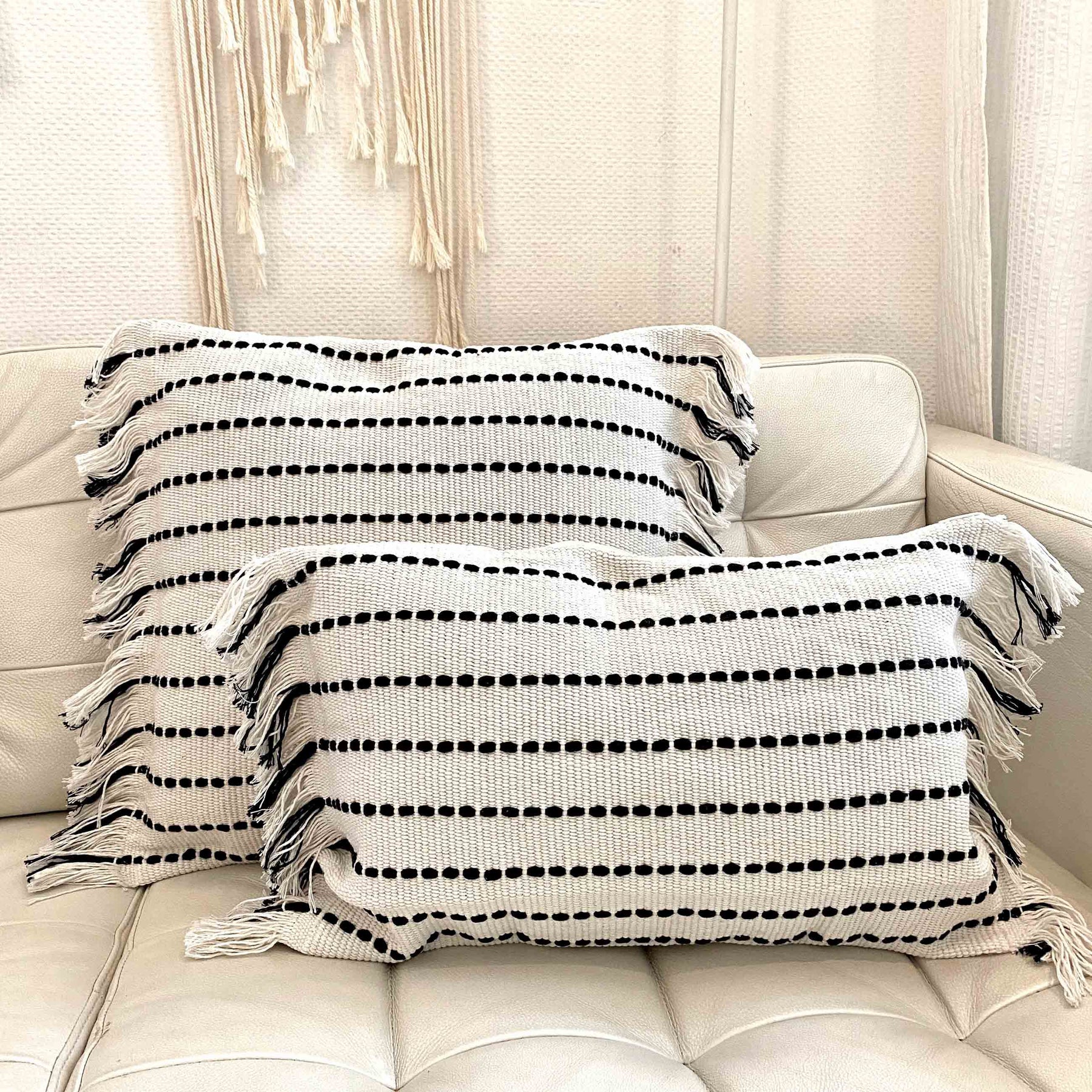 EASY TO COMBINE: The white & black colors make it easy to combine the boho cushion cover with fringes with different colors.