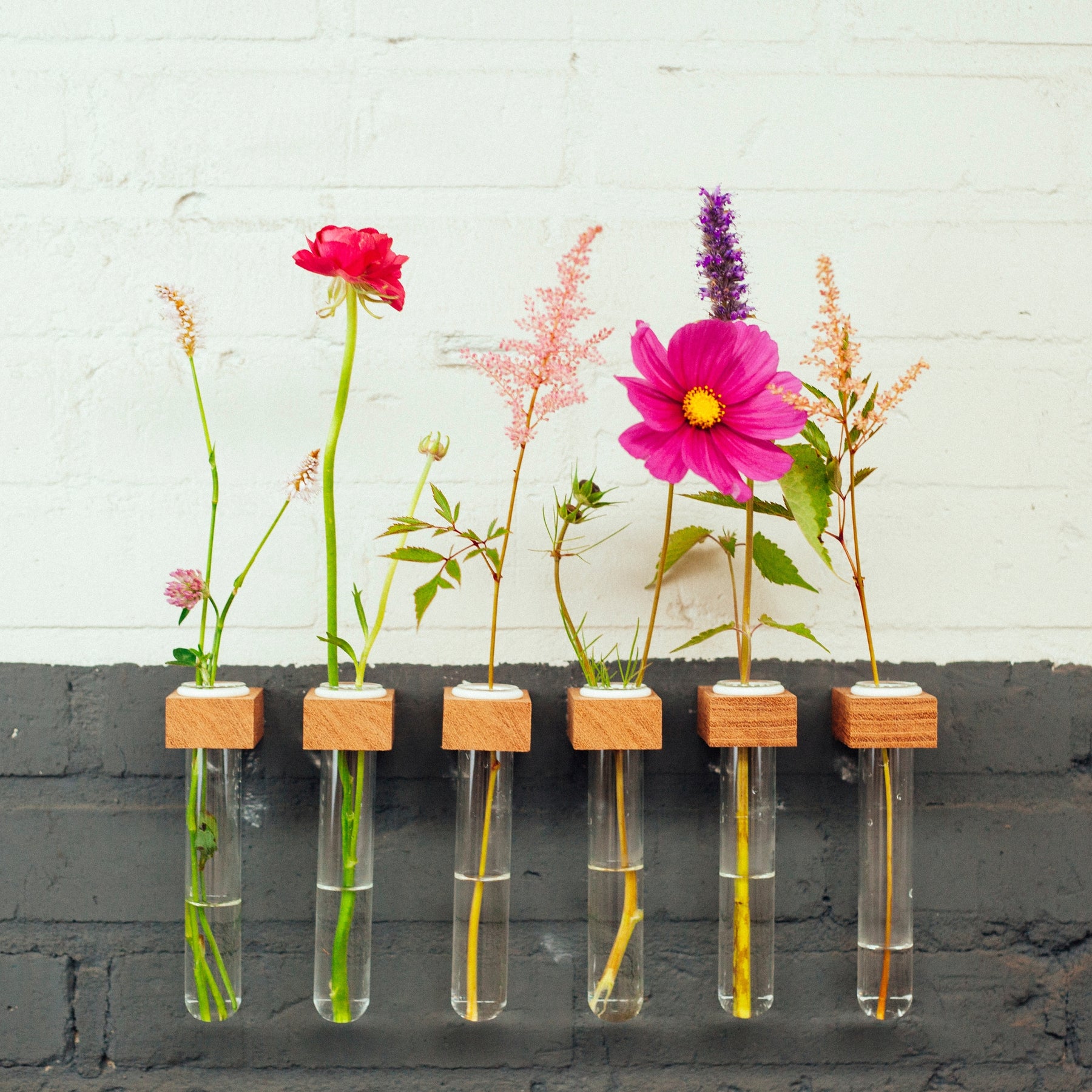Whether in the hallway, living room, bathroom or next to the bed - this vase brings life to any wall. It can be placed individually or combined with other modules to create individual flower arrangements.