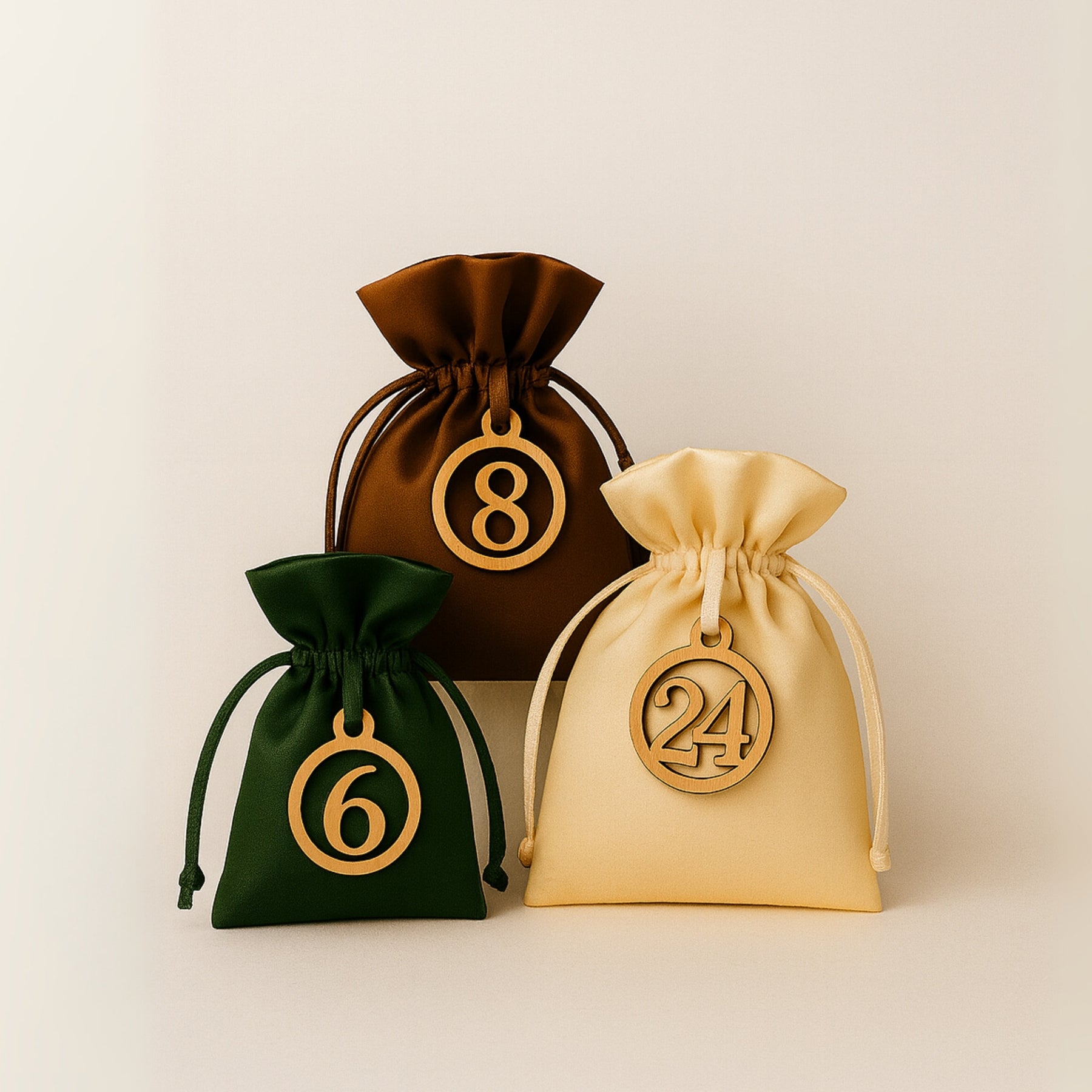 Der Adventskalender kommt in 24 edlen Satin-Säckchen, die du gut wieder verwenden kannst. Ob für ein edles Geschenk oder in deinem Alltag – die Säckchen sind so ausgewählt, dass ihr Leben nicht mit dem Adventskalender endet.